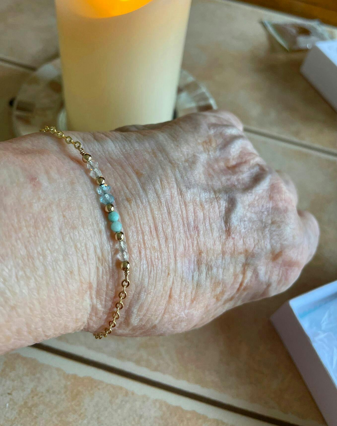 Loved this bracelet. It goes with my necklace too. The ocean colours are just lovely. Angela is great to work with and very artistic. Dee