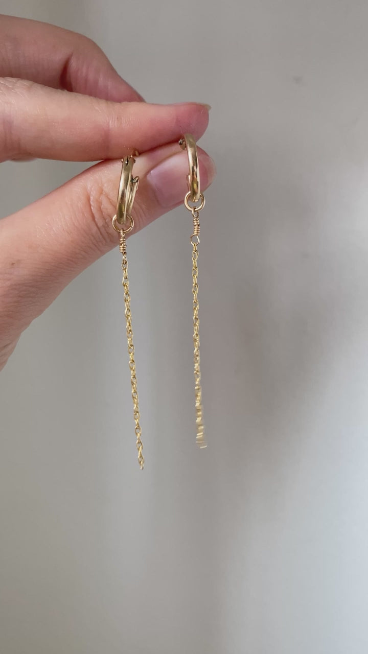 Beautiful and slinky, this chain charm gives a bit of flirty playfulness as your strut. Wear it on your own hoops or with our Marina Hoops. If you'd like a shorter or longer length leave a comment in the notes at checkout.